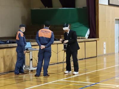 緊急地震速報のアナウンスが流れると、生徒たちは直ちに机の下に身を隠すなどの初期行動(シェイクアウト)を行いました。その後、教員の指示に従い避難場所である体育館へ避難しました。